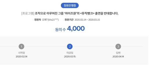 On the same day, a petition was posted on the Cheongwadae National petition board opposing their appearance on 'Music Bank' citing the fact that the group was created through manipulations and yet they're moving forward as if nothing happened.